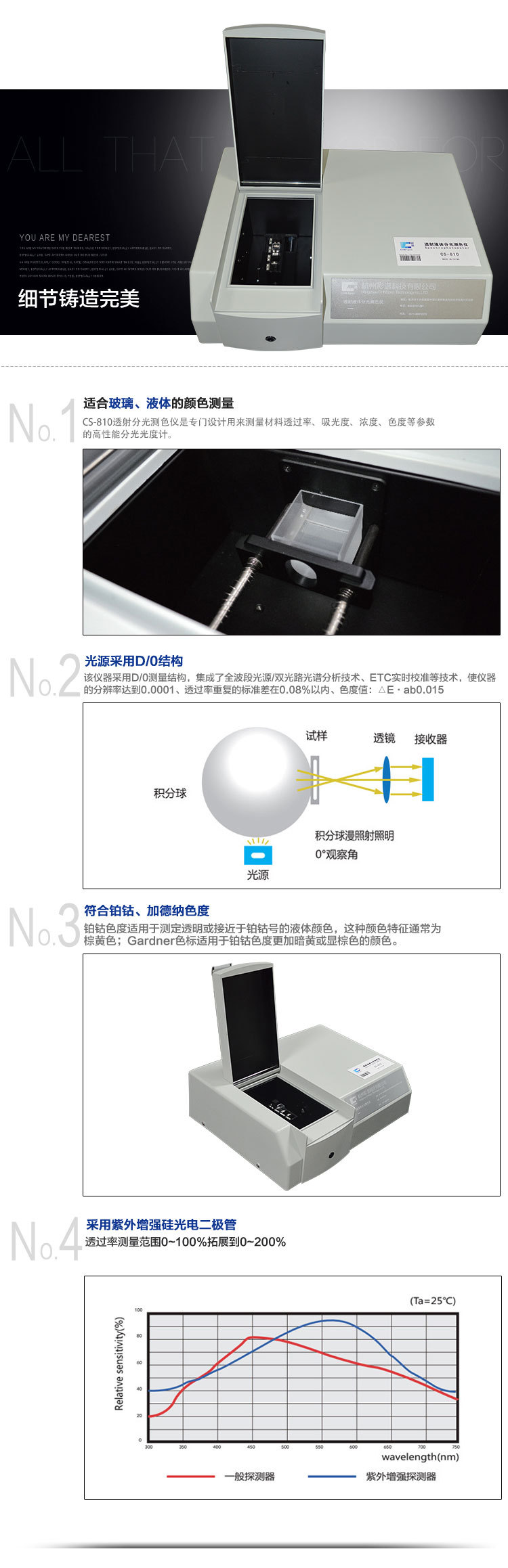 專門設計用來測量液體透過率、吸光度、濃度、色度等參數(shù)的高性能分光儀。可測水質鉑鈷色,適合玻璃、液體顏色測量