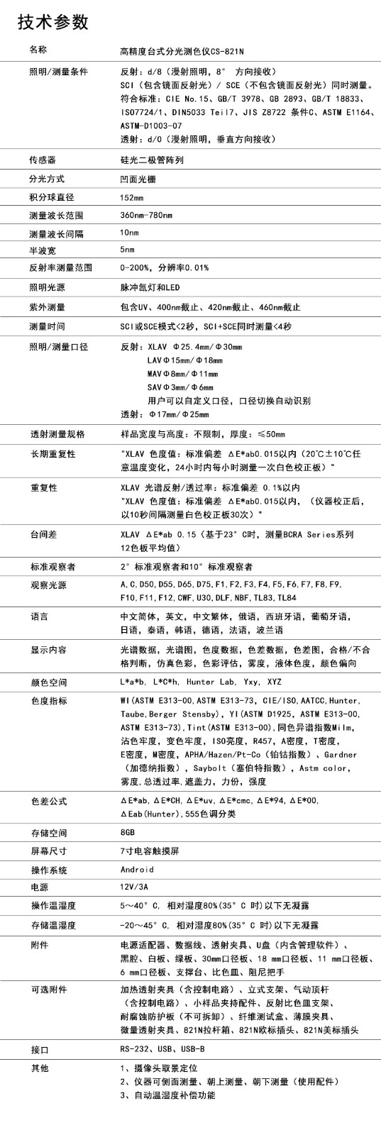 | 測量時間 | SCI或SCE模式<2秒,SCI+SCE同時測量<4秒 |