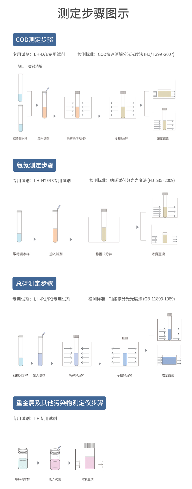 預(yù)存消解程序:COD、總磷、總氮、高錳酸鹽、硫酸鹽、甲醛、自定義