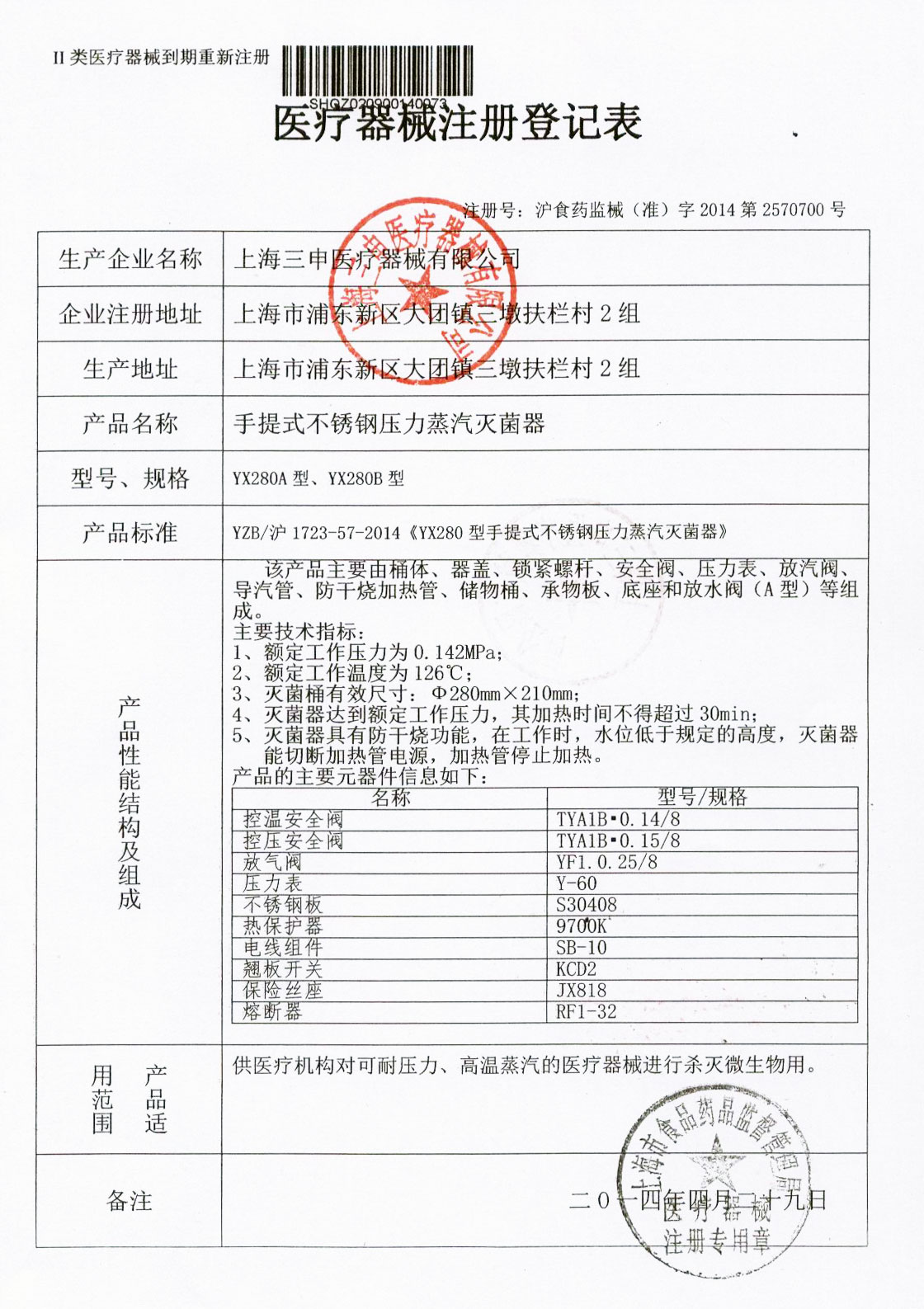 - 有醫療器械產品注冊證和特種設備制造許可證(壓力容器)